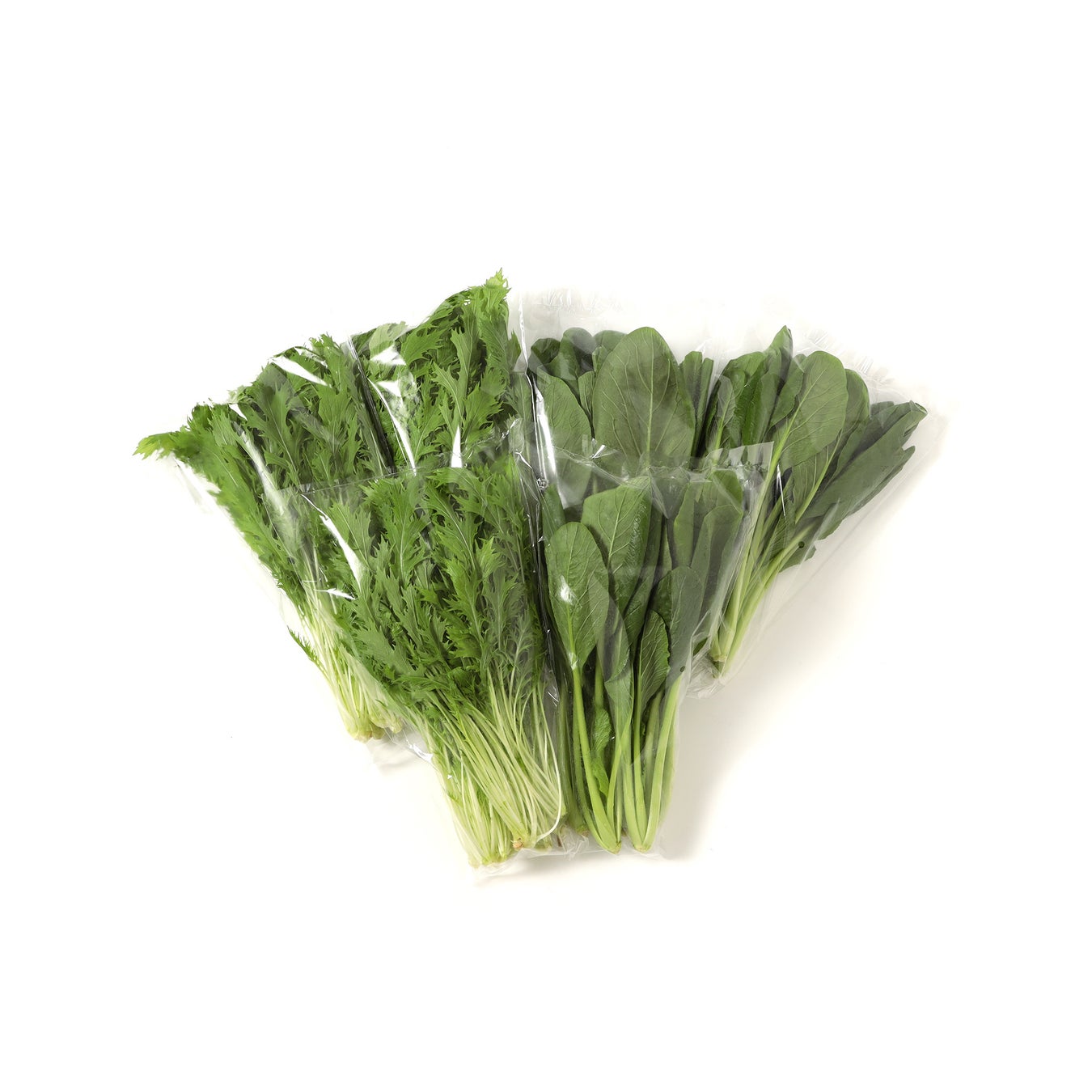 「ホタルの名所」としても有名な三和町のきれいでミネラル豊富な地下水で、活き活きとおいしい葉に育った小松菜と水菜のセットを監修。