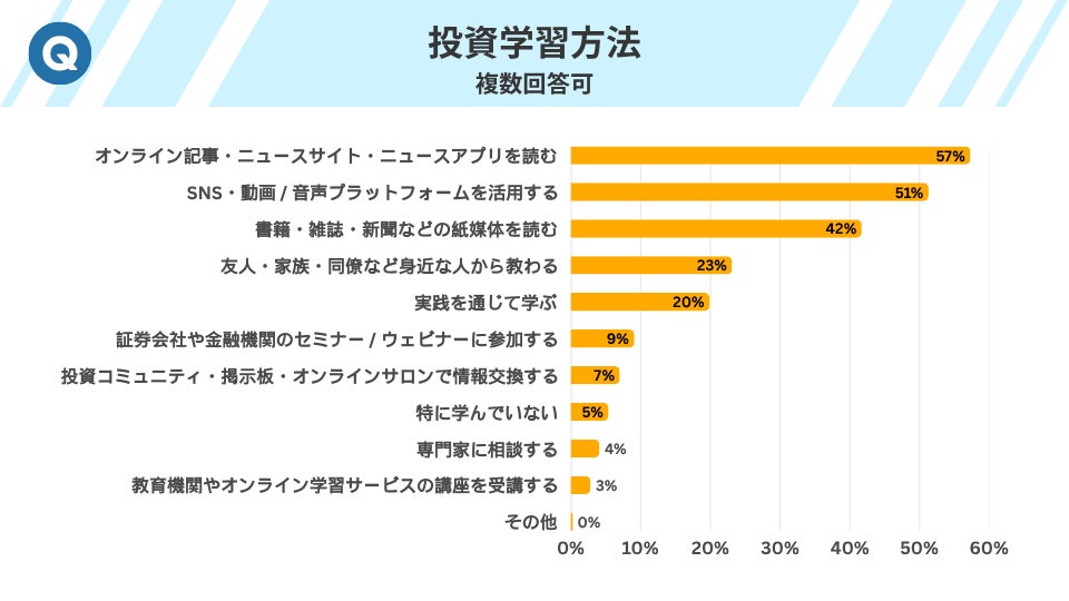 投資の学習方法:オンライン情報が圧倒的主流、実践から学ぶ層も