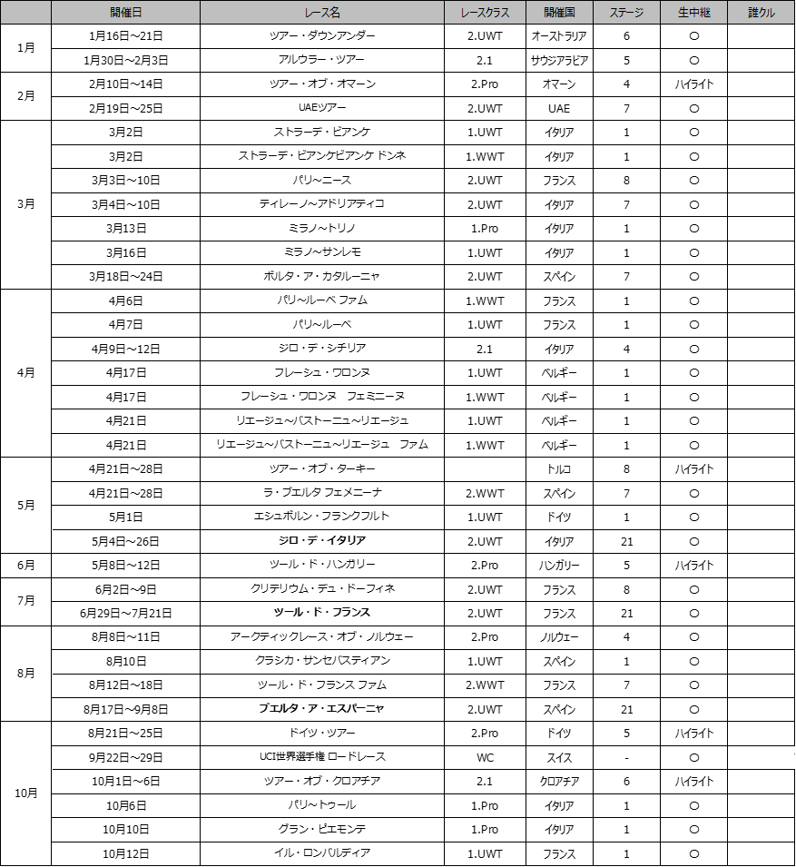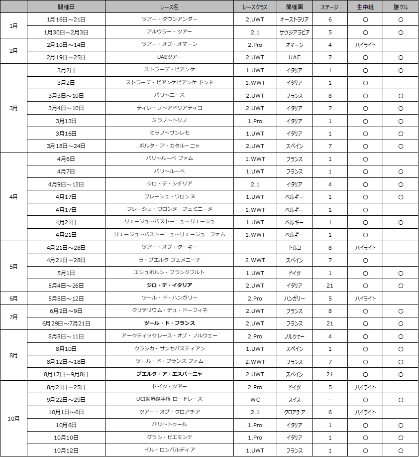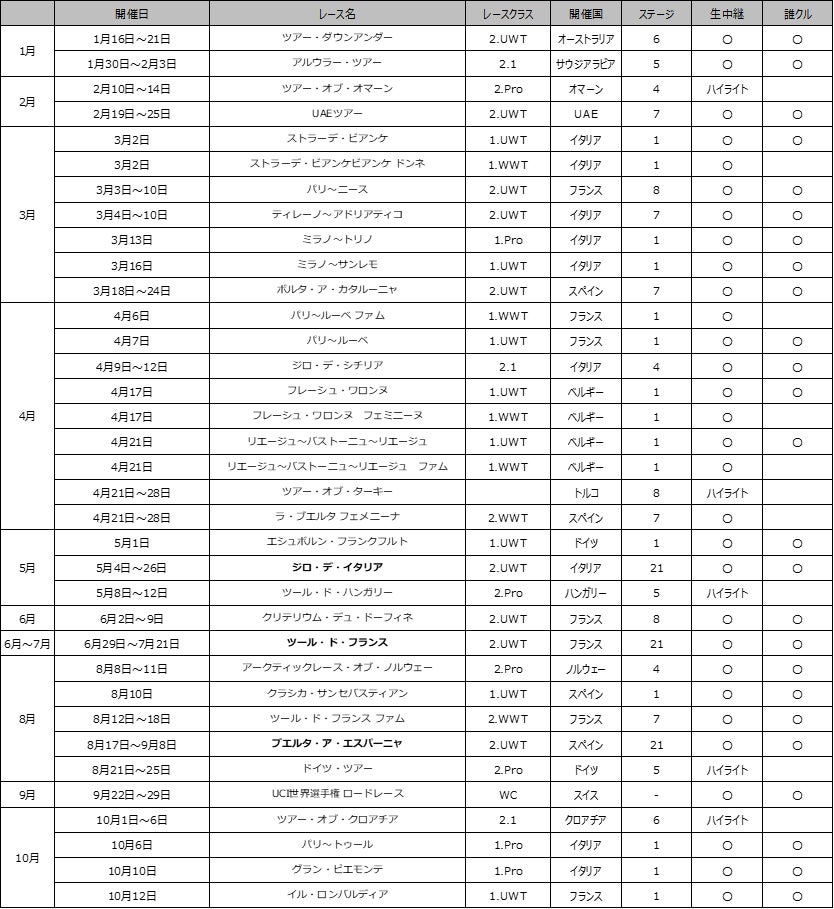今年もグランツール全戦、世界選手権、モニュメント4レースなど世界トップレースを多数お届け!