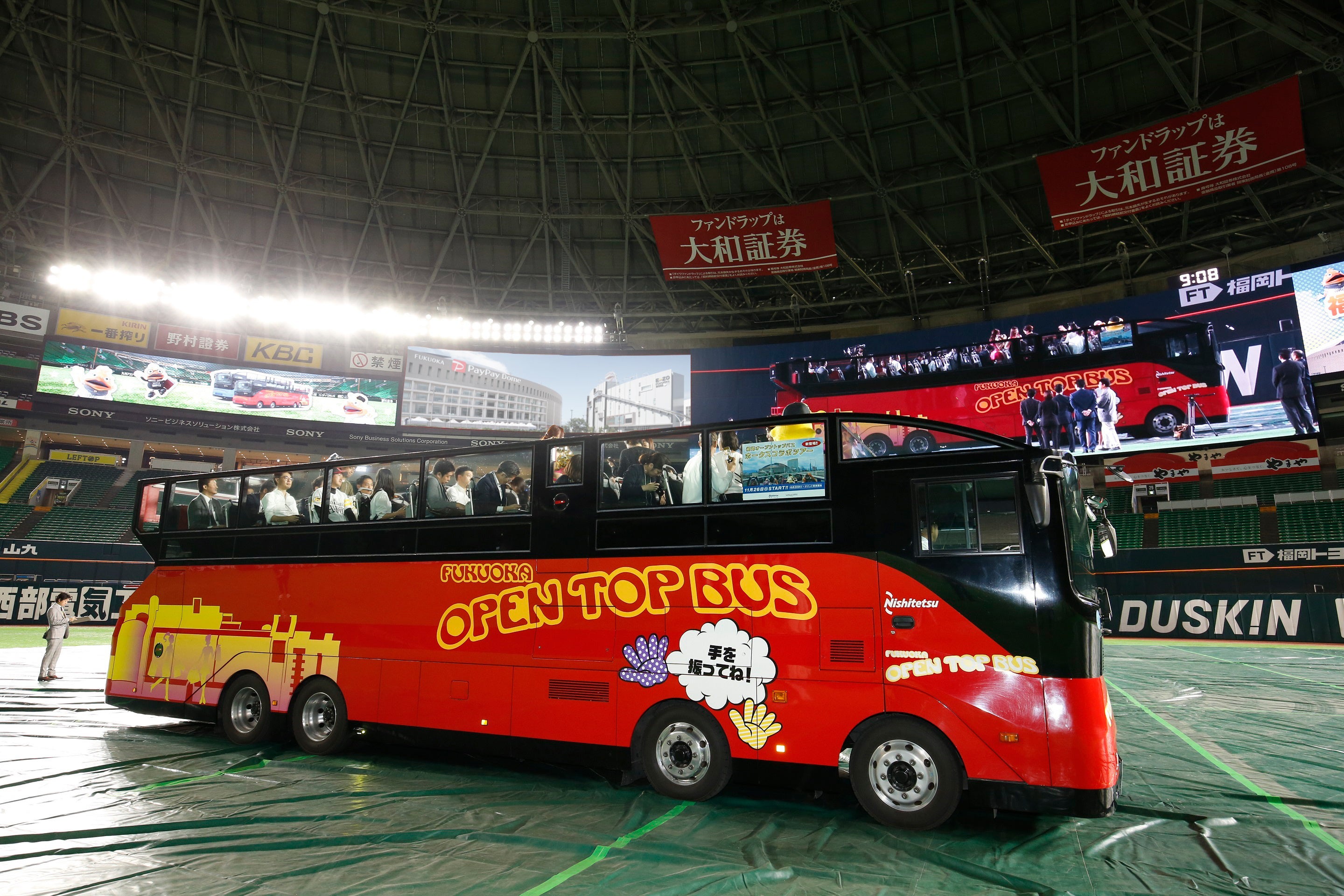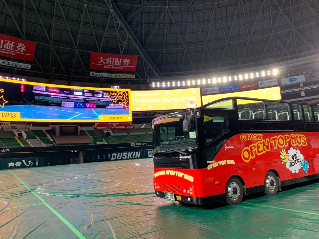 大好評の福岡オープントップバスとホークスのコラボツアーの開催が今年も12月21日(木)~24日(日)の4日間限定で運行!福岡市内の主要観光スポットを巡る「福岡オープントップバス」の運行ルートに「PayPayドーム」が加わった「ホークスコラボツアー」の発売が決定しました!オープントップバスに乗ったままドームのフィールド内に入ってドームツアーも楽しめる特別なツアーです!ぜひこの機会にご参加ください!