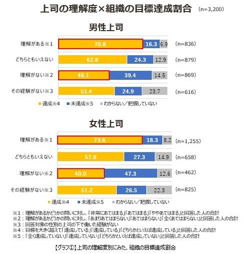 ~「上司の理解がある」と回答したグループの目標達成割合は7割以上という結果に~