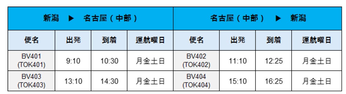 新潟~中部路線は現在、トキエアが週4日、1日2往復運航しております。多くのみなさまに当地域にお越しいただき、魅力に触れていただくことを期待いたします。