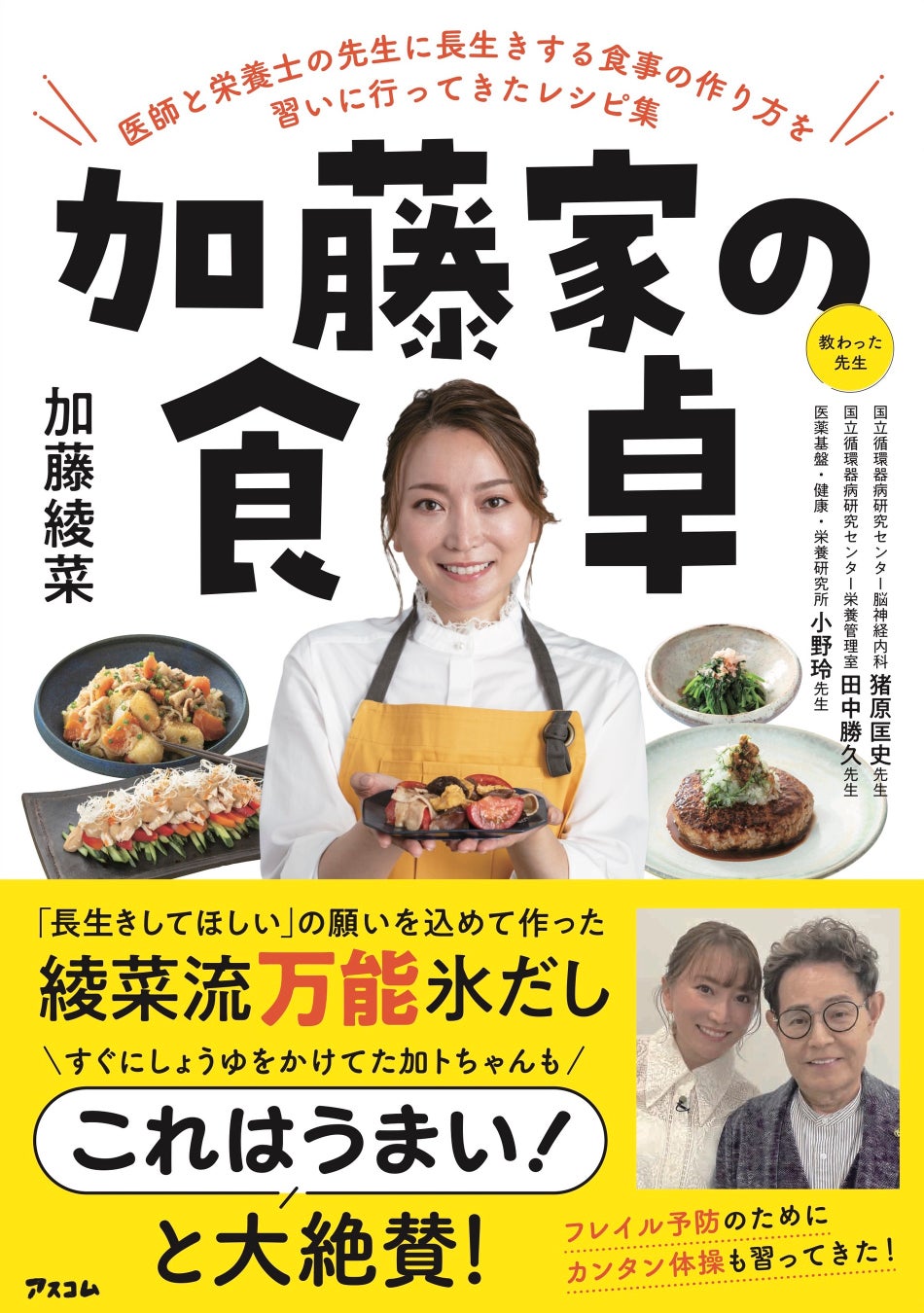 介護食アドバイザーなど多数の資格を取得し夫・加藤茶さんを支える加藤綾菜が、今度は国立循環器病研究センター・栄養士から減塩レシピを習得!『加藤家の食卓』(アスコム刊)9月12日(火)発売!