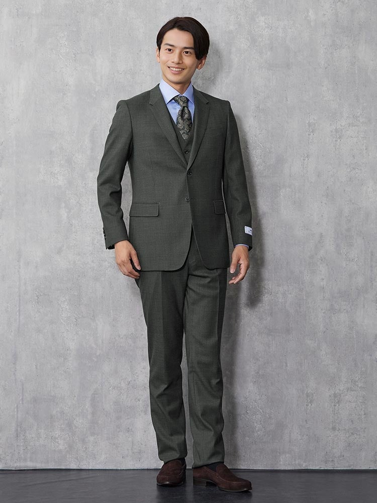 深めの落ち着いたオリーブグリーンカラーは、大人っぽさと上品さを兼備していて、派手さのないスタイリングが叶うカラーセットアップに仕上げています。また、他には秋色として人気の赤みのあるダークブラウン、黄みブラウン、ベーシックな印象のブラック、ダークブルーのカラー展開で全5色ご用意いたしました。