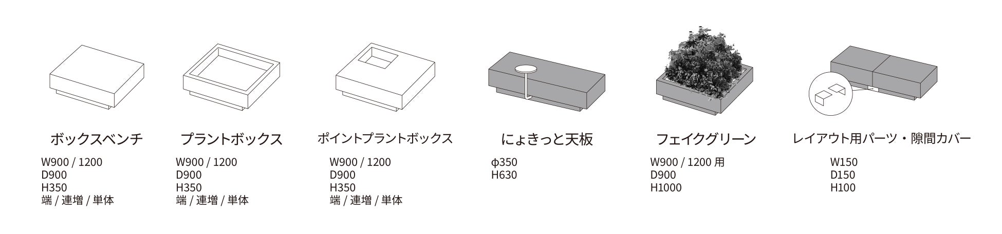 「ボックスベンチ」・「プラントボックス」・「ポイントプラントボックス」の3形状