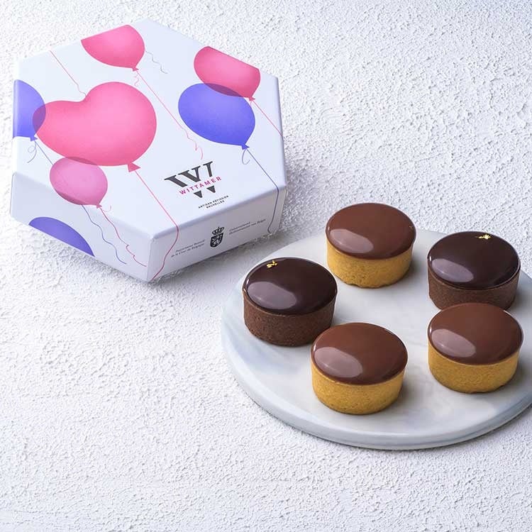 ベルギーの首都ブリュッセルで1910年創業の老舗洋菓子店。軽やかなチョコレートクリームとキャラメルやコンフィチュールをとじ込めたタルトです。