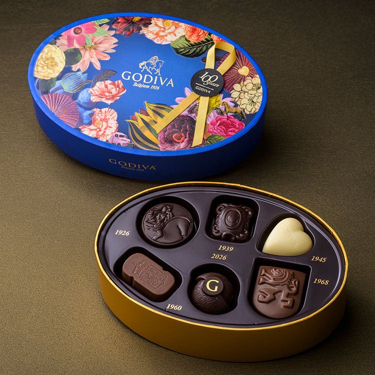 100周年を迎えるゴディバが送り出す、ベルギー王室御用達として伝統の継承と共に革新を重ねてきた100年のアーカイブショコラコレクション。時代を超えて愛され続けるチョコレートから100周年記念粒までを、シックで華麗なパッケージに詰め合わせました。