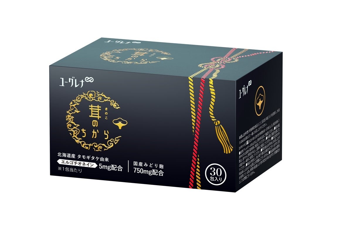 「茸(きのこ)のちから」は、専門店向けサプリメント「ちからプロフェッショナルシリーズ」より、若々しさを支える力がゴマの健康成分セサミンの約1000倍※2であり、年齢とともに気になる美と聡明な毎日をダブルで支える「エルゴチオネイン」と、当社独自素材「みどり麹」を配合したサプリメントです。本商品は、1日1包(4粒入り)あたりに、農薬や化学肥料を使わずに育てた北海道産タモギタケ由来の「エルゴチオネイン」を1日摂取目安量の5mg、当社独自素材「みどり麹」を750mg、毎日摂りたいビタミンB群を栄養ドリンク1本分※3配合しています。