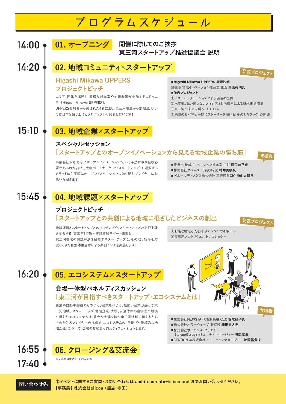 eiiconは、愛知県からの受託により、『東三河スタートアップ・エコシステム共創カイギ』を含む本事業全般を運営しています。
