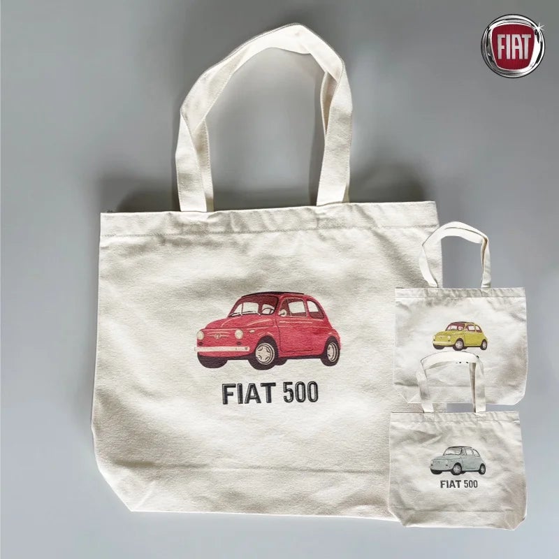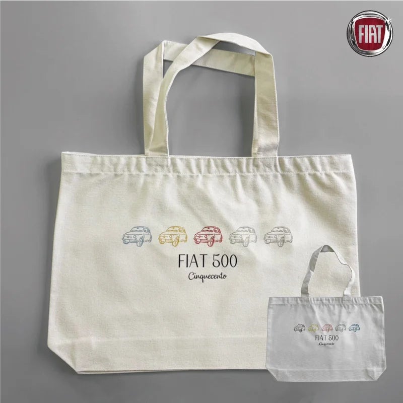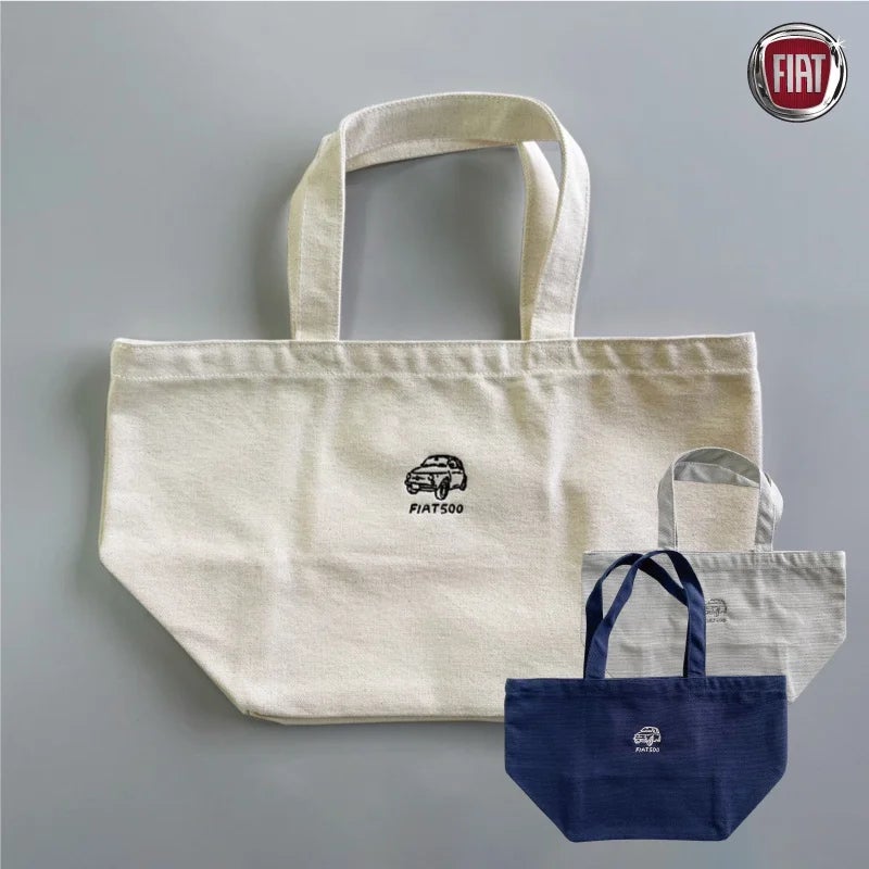 大人気の FIAT 500 Nuova(チンクエチェント)をモチーフにしたプリントTシャツや刺繍Tシャツ、トートバッグがラインナップとなります。
