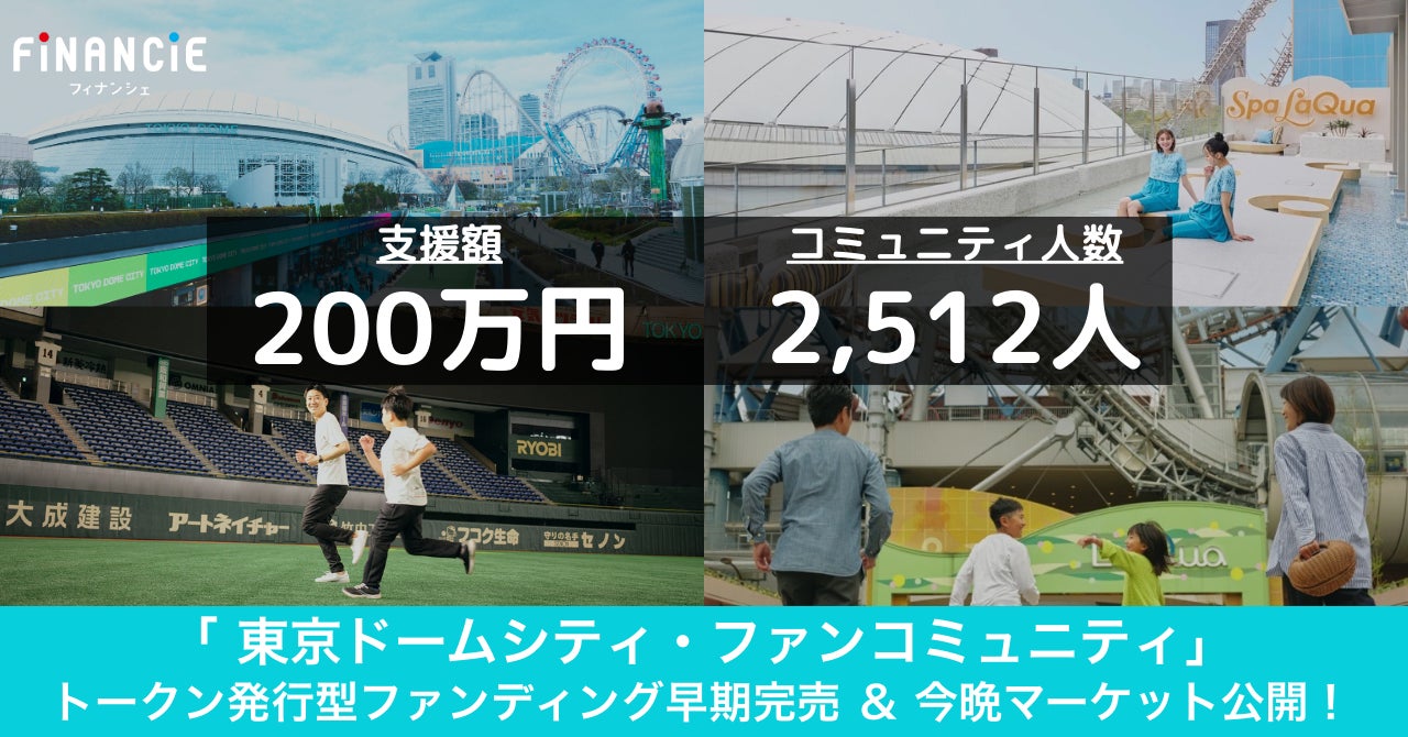 株式会社フィナンシェ(代表取締役:國光 宏尚、以下フィナンシェ)は、株式会社東京ドーム(代表取締役社長 COO:長岡 勤)が運営する「東京ドームシティ・ファンコミュニティ」が、FiNANCiEにて5月8日(木)19時よりトークン二次流通マーケット取引が開始しますことをお知らせいたします。