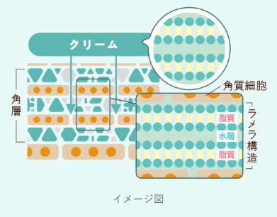 ① 肌の構造に着目したラメラ構造型※1クリームを含むマスクで包み込む、独自の「クリームラップ処方」