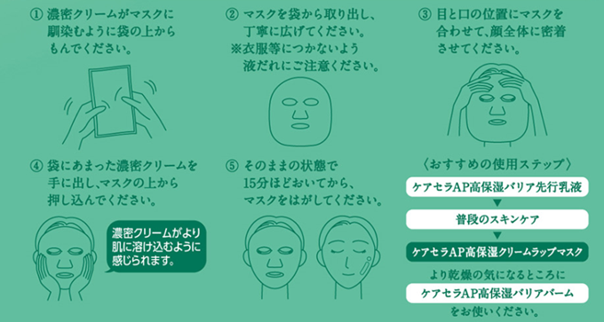 今回ケアセラが着目したのが、乾燥ダメージが気になる時に、肌を包み込みながらうるおいを守る「集中ケア」です。肌の構造に着目したラメラ構造型※1クリームとセラミド(うるおい成分)※3を配合したマスクで肌をラッピングするという発想から、「ケアセラ AP 高保湿クリームラップマスク」が誕生しました。フェイスマスクという形で届けることで、肌をより丁寧にいたわるためのうるおい集中ケアを提案します。