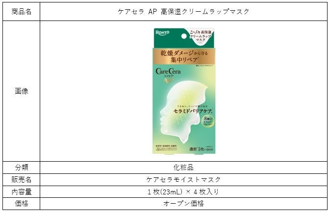ロート製薬株式会社(本社:大阪市、社長:瀬木英俊)は、乾燥肌・敏感肌に寄り添うスキンケアブランド「ケアセラ」から、肌にうるおいを与えて乾燥ダメージから守る集中うるおいリペアケアとして、「ケアセラ AP 高保湿クリームラップマスク」(販売名:ケアセラモイストマスク)を、2026年1月19日(月)より順次、EC(Amazon、楽天、ロハコ、@コスメ、ロート通販)にて先行発売いたします。