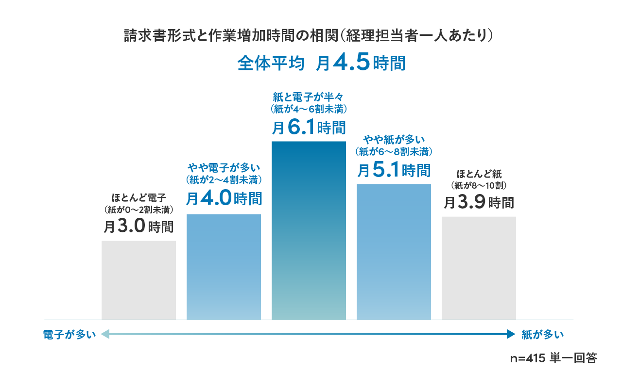 〜電帳法対応で、経理担当者の業務が一人あたり月4.5時間増加。紙と電子の混在による業務負担増が明らかに〜