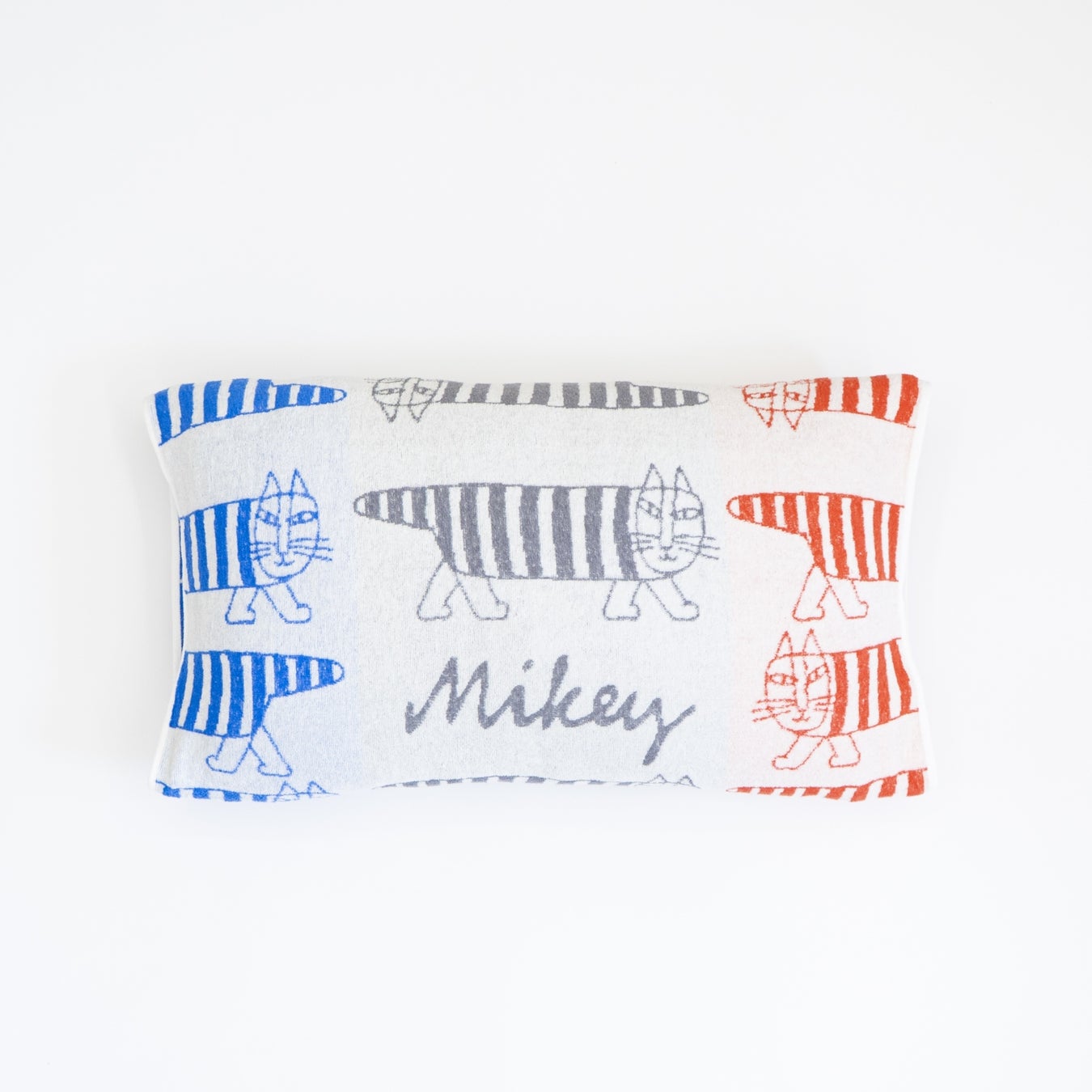 2008年、リサ・ラーソンとその娘ヨハンナ・ラーソンによる共作絵本「BABY NUMBER BOOK」の表紙でデビューした赤と白のしましまの猫。その後、数えきれないほどのオリジナル商品やコラボレーションが生まれ、「日本で一番有名な北欧の猫」に。いろいろなマイキーを集めた「MIKEY STYLE BOOK」など、書籍も多数あり。