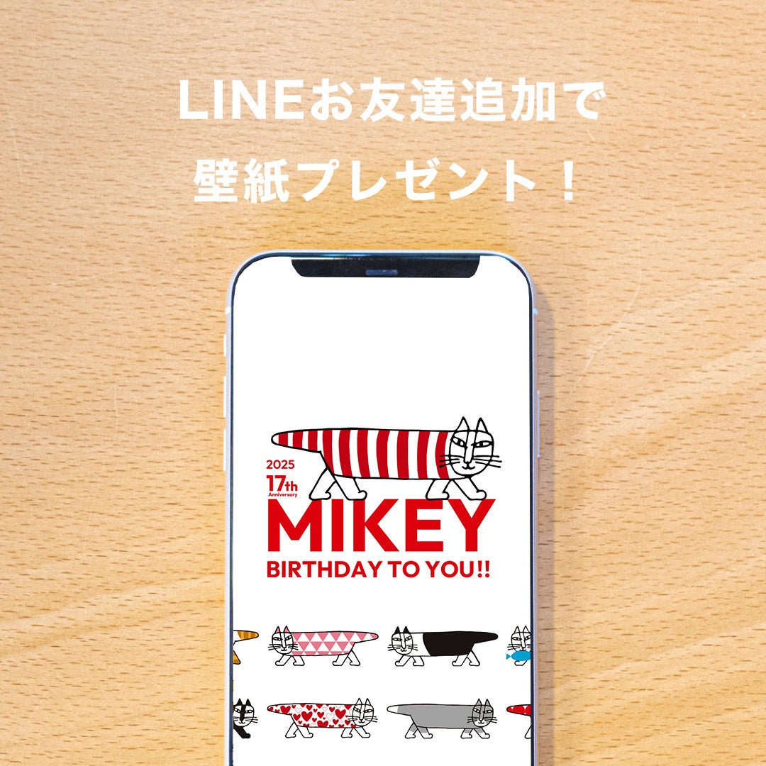 2025年4月30日(水)までの期間限定で、17匹の仲間が集まった最新アートワークのオリジナル壁紙をプレゼント中!マイキーの新商品も続々登場!