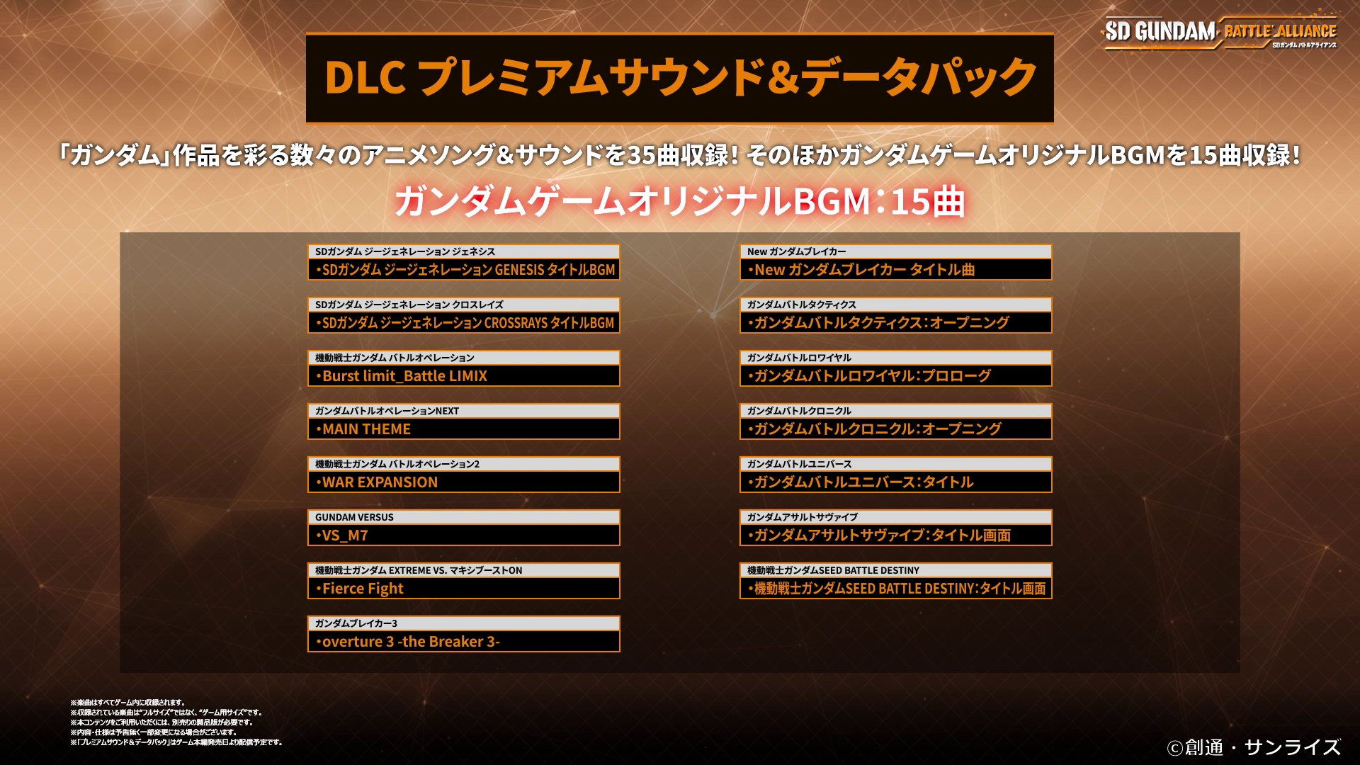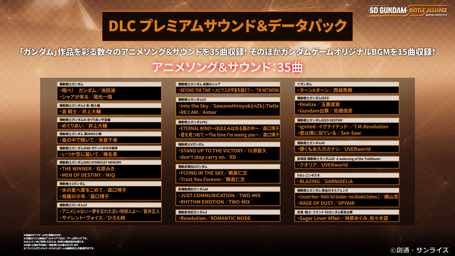※「プレミアムサウンド&データパック」、「シーズンパス」は単品でも販売予定です。重複購入にご注意ください。