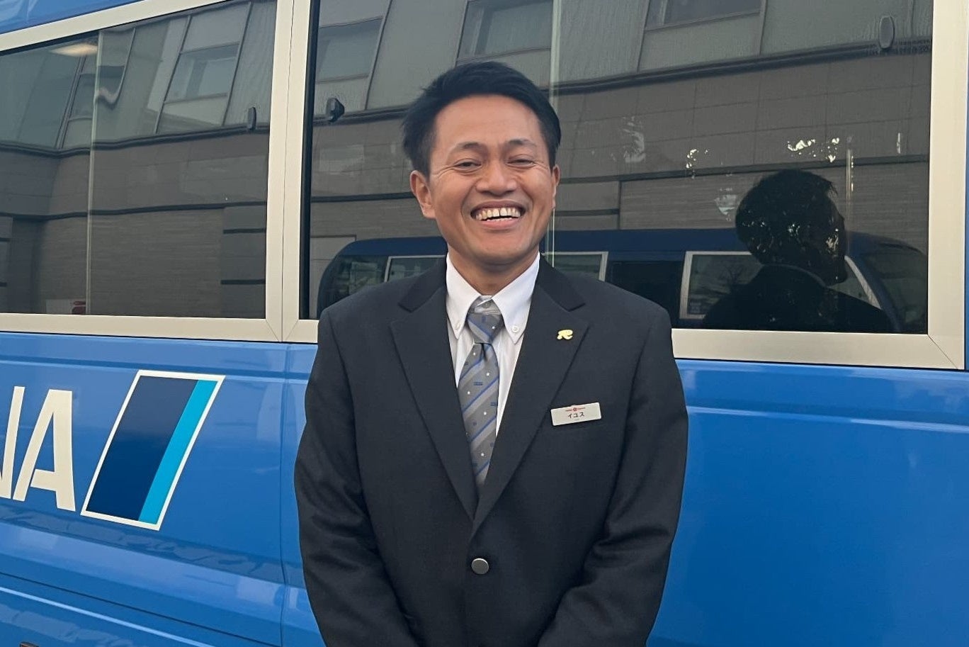 インドネシア出身。大学卒業後、2013年7月に来日し日本語学校へ入学。同校卒業後、旅行会社で勤務。2024年6月、バス運転者を目指してニッコー観光バスへ入社
