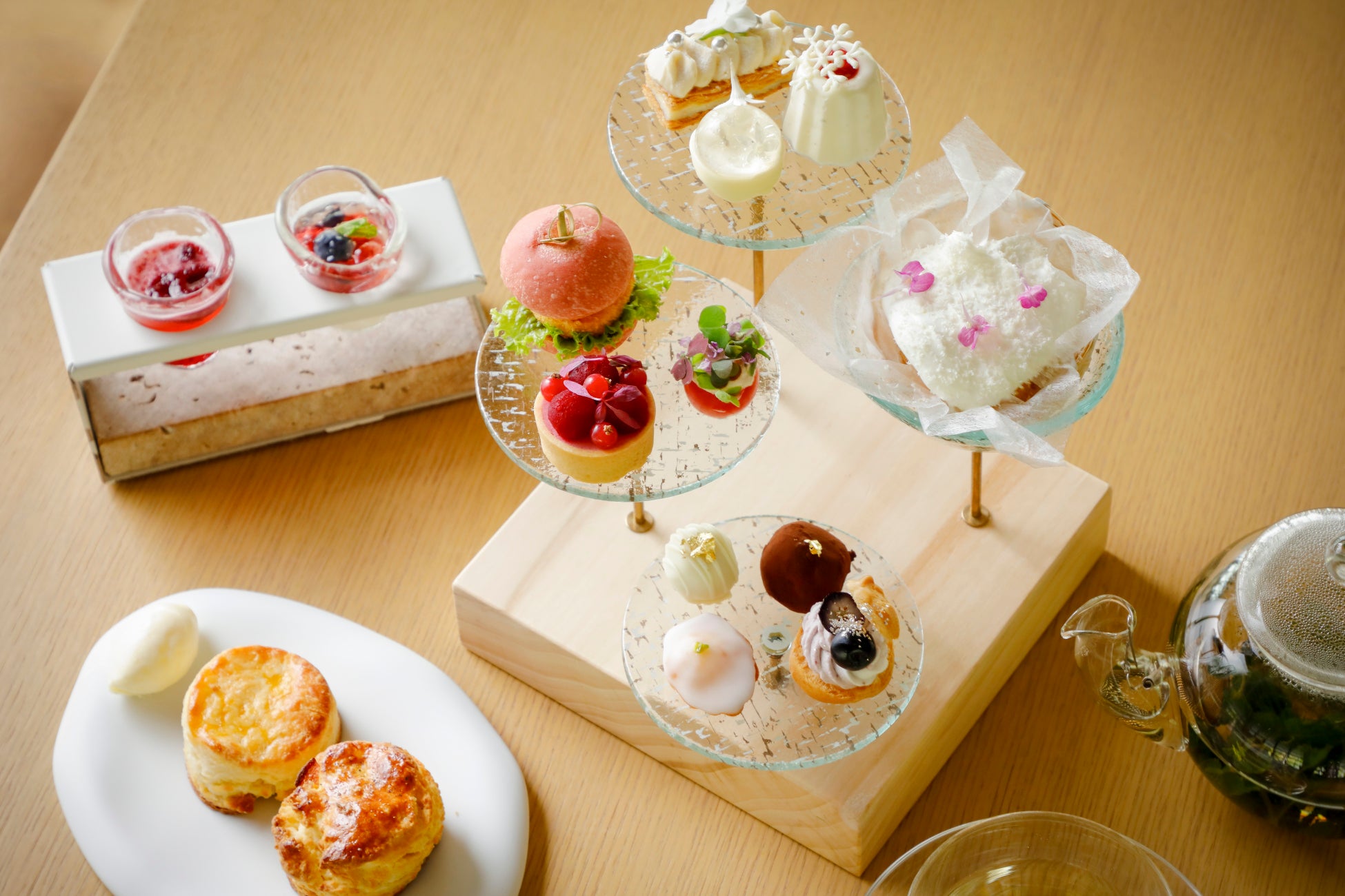 煌びやかなスノードームに見立てたエルダーフラワーとホワイトチョコレートのムースゼリー、京都紅茶のミルフィーユや柚子香るウィークエンドシトロンなど、冬の午後のティータイムを華やかに演出するホワイトカラーのスイーツがラインナップ。オレンジ香る自家製わらび餅にチョコレートリキュールを染み込ませたババを合わせ、純白なクレームシャンティを重ねたスイーツは、ROKU KYOTOオリジナルの一品です。その他、トリュフ入りのコロッケバーガーや、聖護院かぶと金柑のスコーンなど、冬の味覚を使用した紅色のセイボリーをご用意。ジンジャーやシナモンのフレーバーティーなど8種類のオリジナルティーセレクションとともに、壮麗な鷹峯の自然の中で味わうアフタヌーンティーをお楽しみください。
