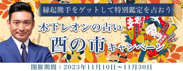 ※「酉の市キャンペーン」にご参加いただくには、公式サイト『木下レオンの占い』(https://kinoshita-reon.jp)への会員登録が必要です。(月額330円)