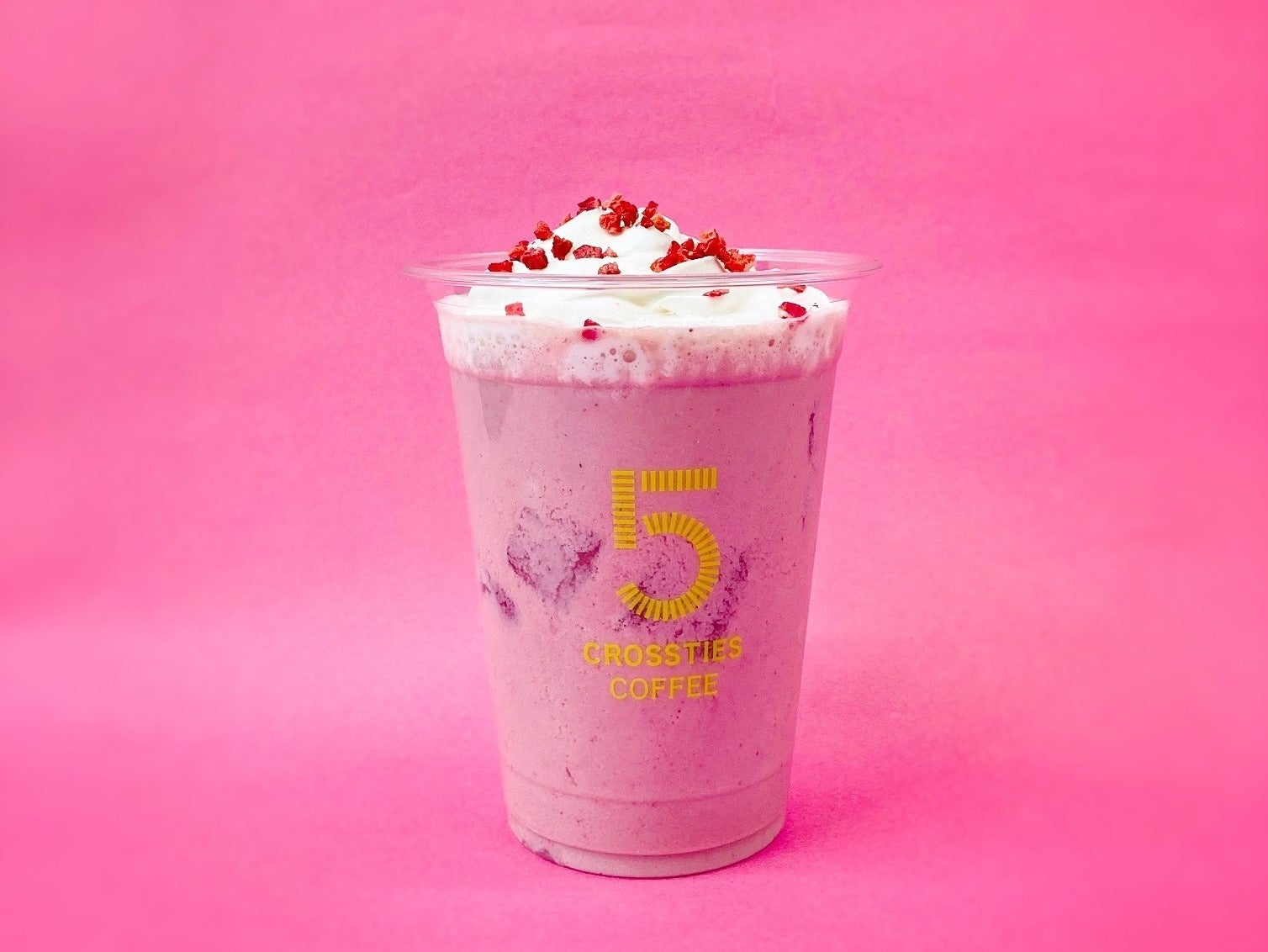 いちごと豆乳を合わせ、スムージーを思わせる濃厚な桜色のドリンクに仕立てました。