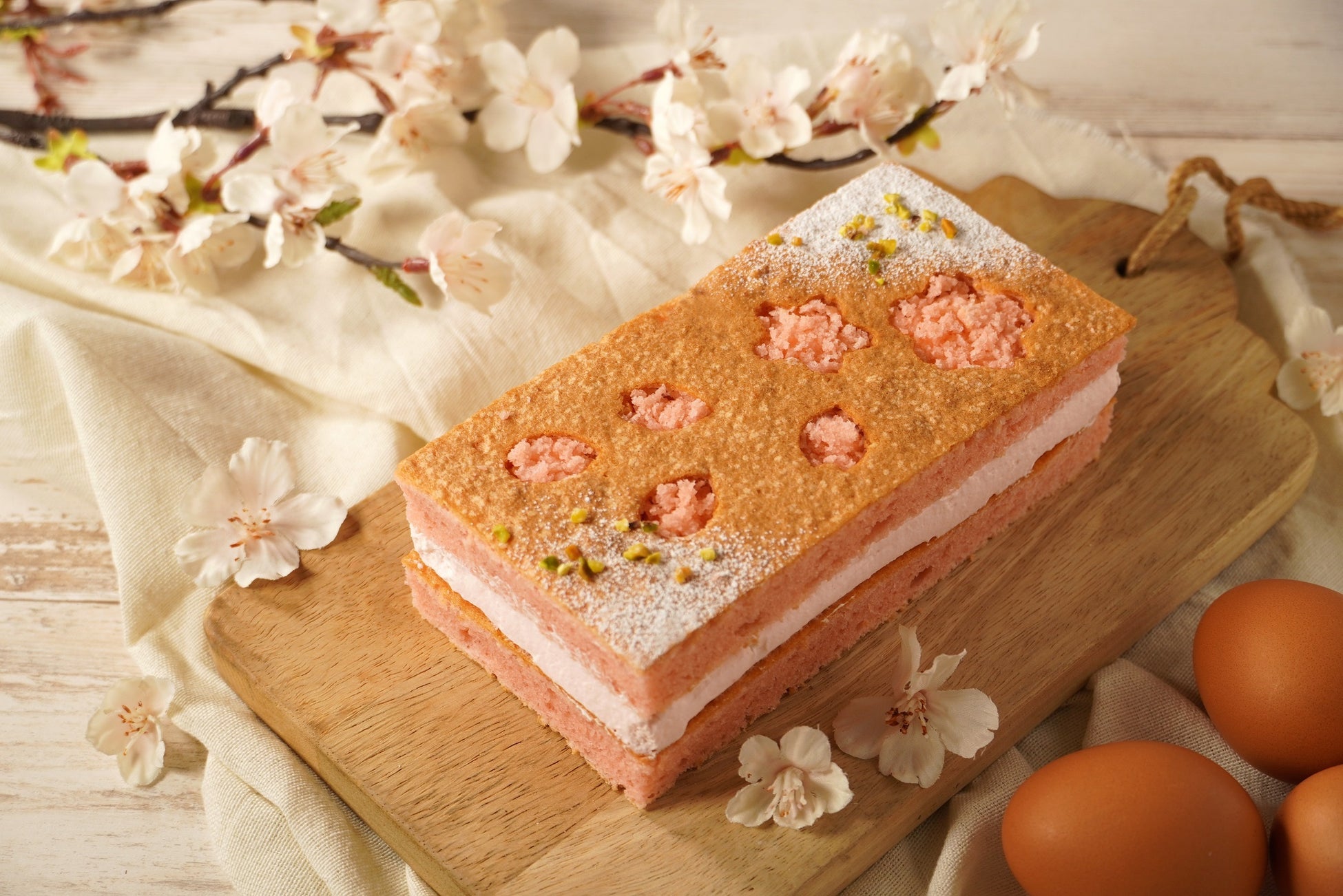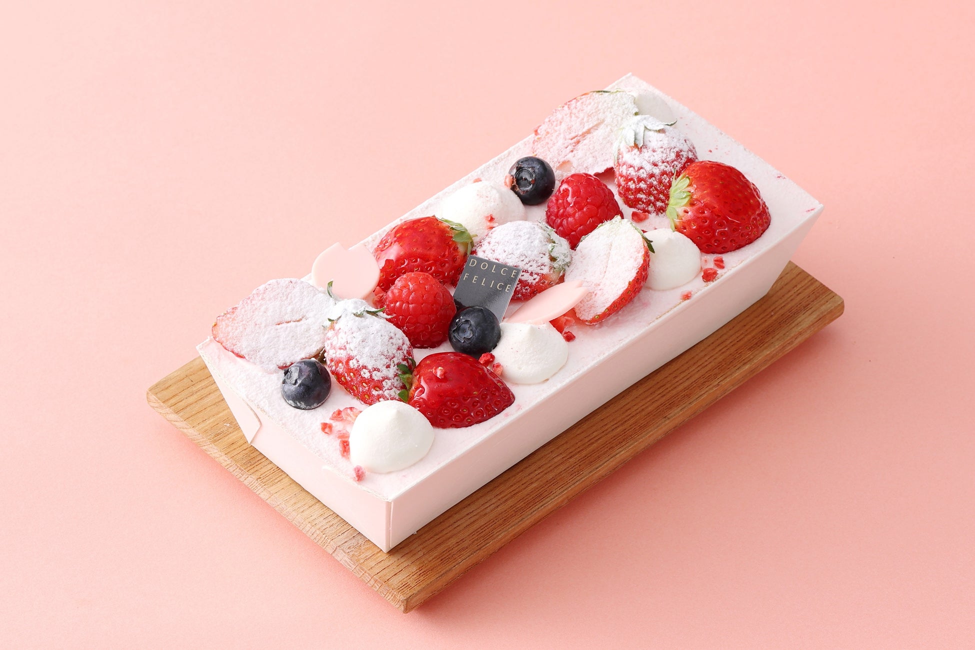 人気の苺のロングショートケーキに花びらをトッピングした春限定のケーキです。