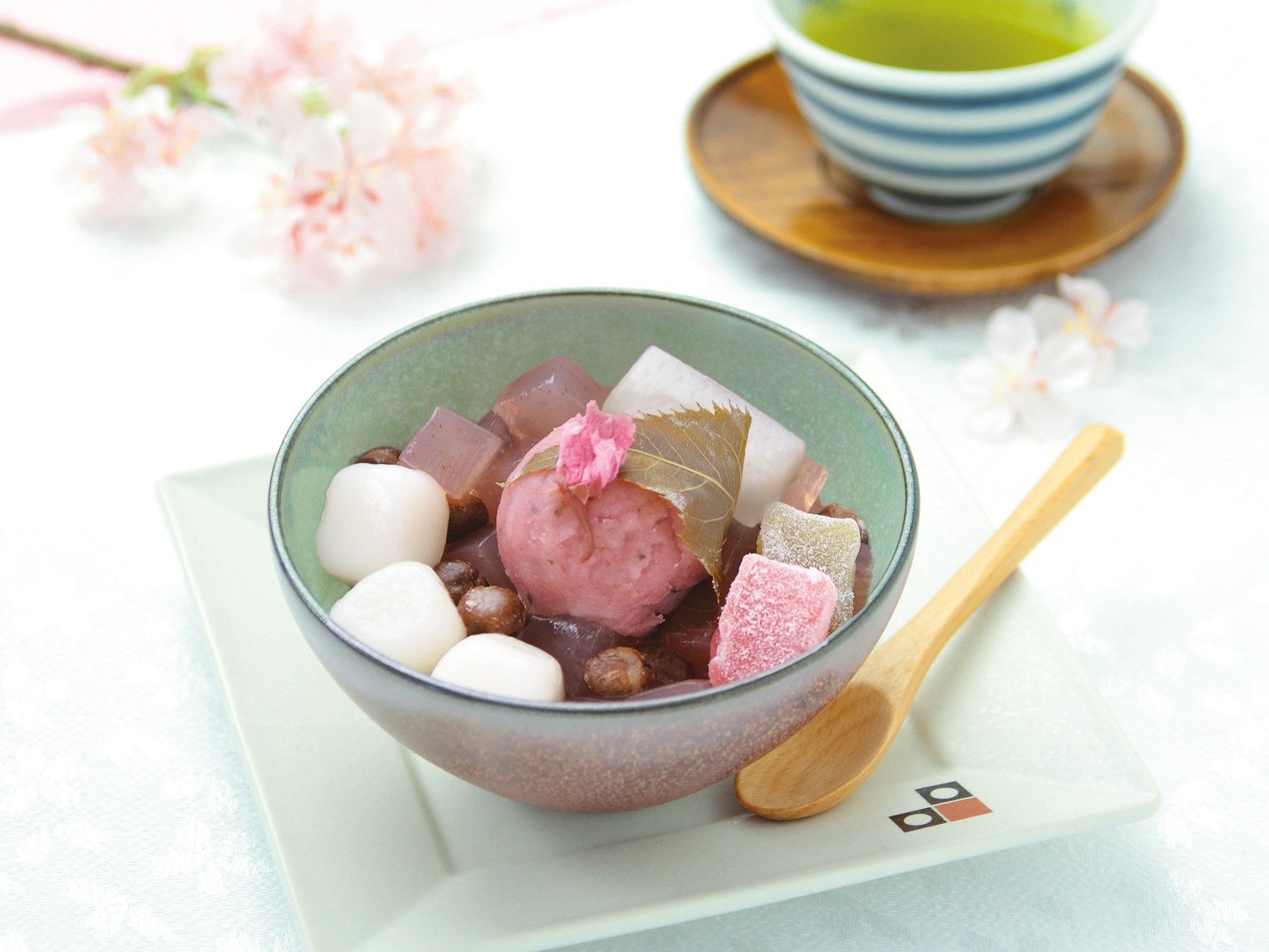桜餡に桜寒天、白玉を合わせた限定のあんみつです。