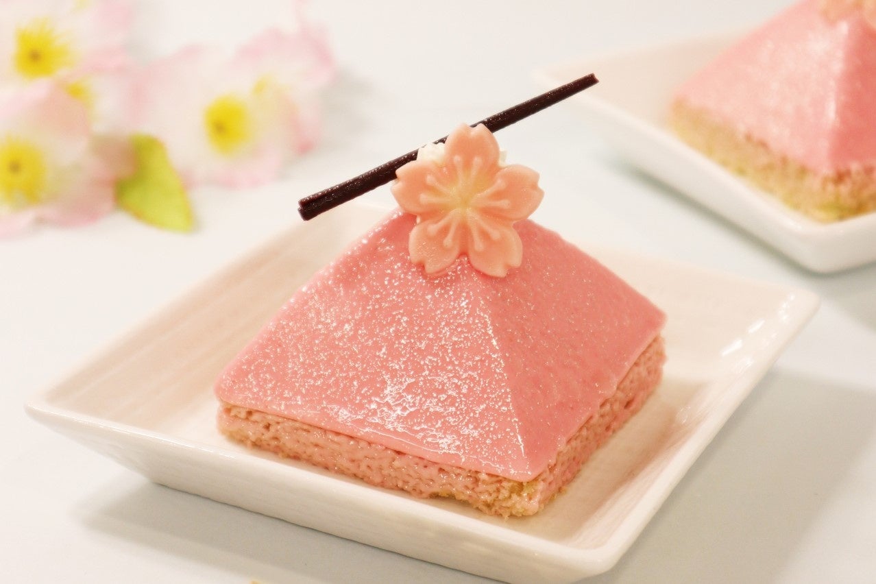 桜のムースに桜と苺のジュレをしのばせた、桜色の春スイーツです。甘酸っぱいジュレとくちどけのよいムース。ひとくちほおばると、ふわっと桜が香ります。
