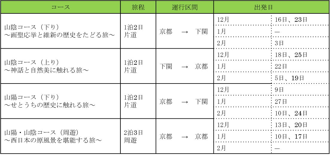 ※山陰コース(上り)・山陽コース(上り)の設定はございません。