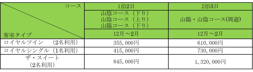 「TWILIGHT EXPRESS 瑞風」2023年12月~2024年2月出発分[第21期]の販売について