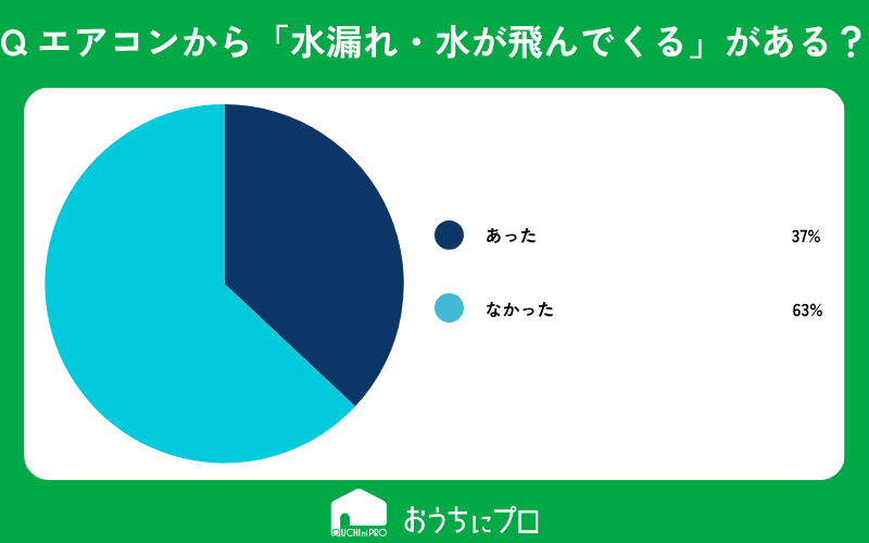 エアコン本体から「水漏れ」「水が飛んでくる」といった経験をした人は37%いる。