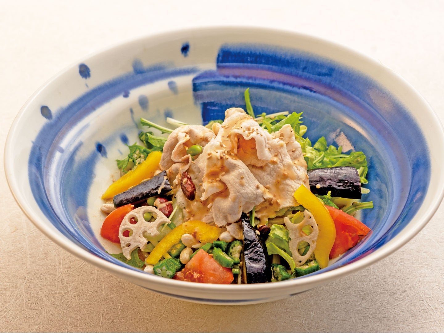 春の日差しが暖かくなり始めたこの時期に人気の涼麺。今年は沖縄産豚ロース肉を冷しゃぶにし、特製ごまだれの冷やしスープとたっぷりの旬野菜で仕上げました。この機会にぜひご賞味ください!