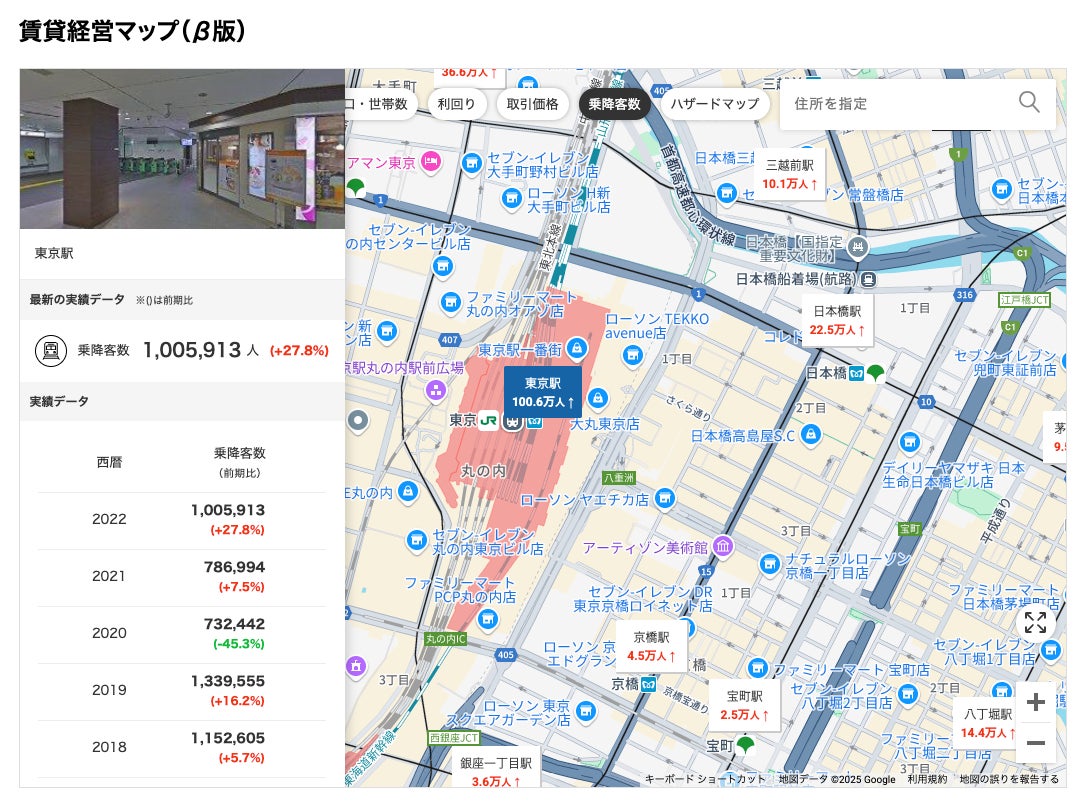 楽待が提供する「賃貸経営マップ」に乗降客数の推移を確認できる機能を追加
