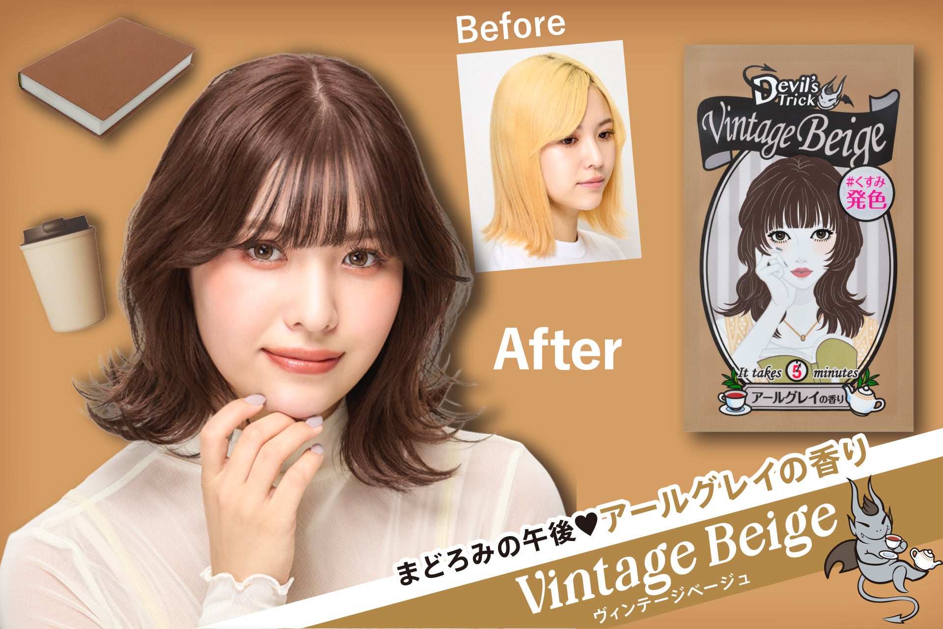 【ヴィンテージベージュ】の女の子は、古着や喫茶店好きのアンニュイなサブカルガールをイメージ。