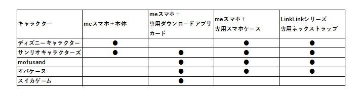 【補足資料】『meスマホ+』キャラクターコンテンツ表
