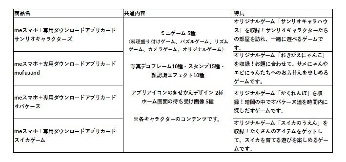 *『meスマホ+専用ダウンロードアプリカード サンリオキャラクターズ』の内容は『meスマホ+ サンリオキャラクターズ』に搭載しています。