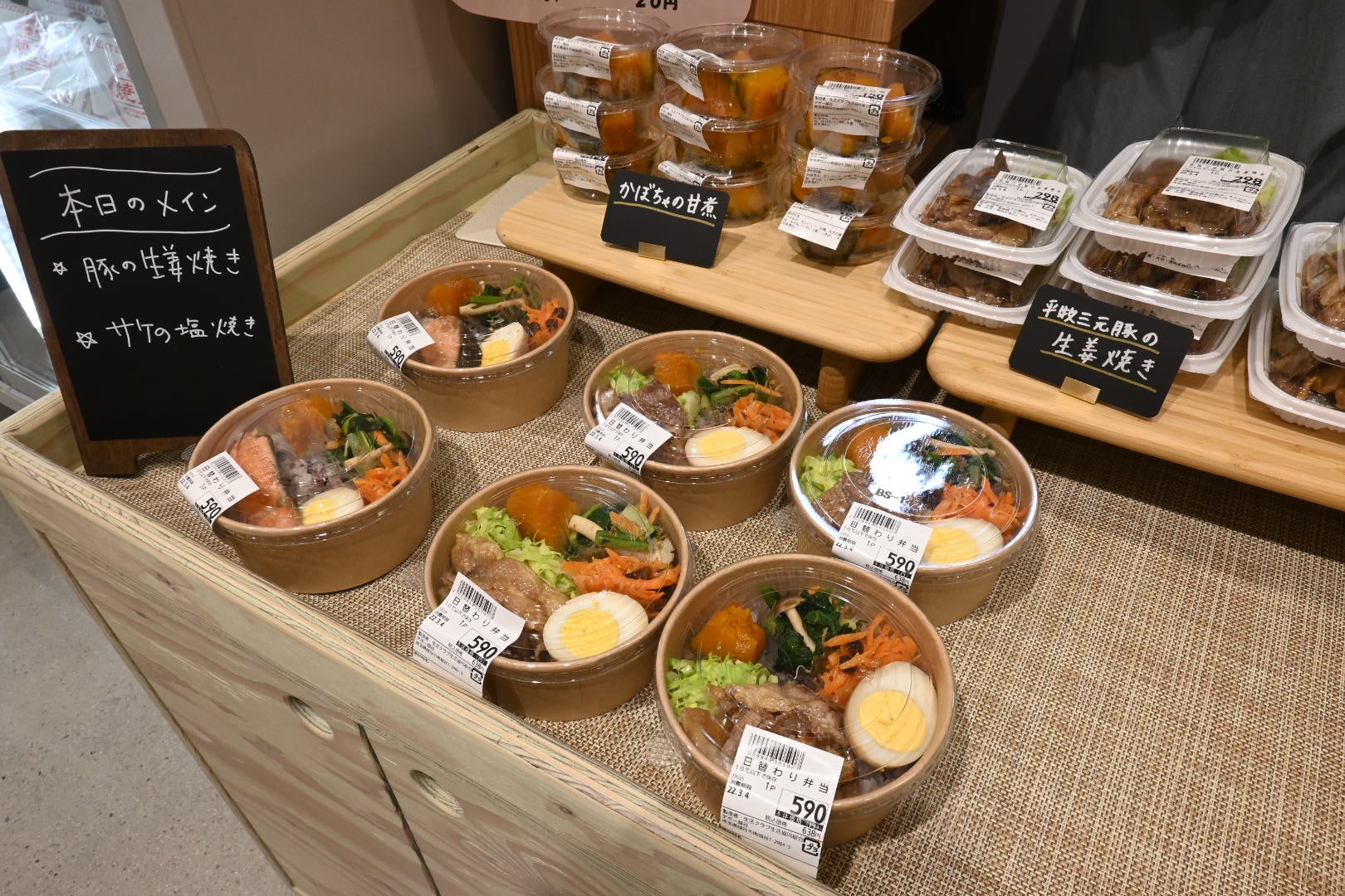 「デポー越谷」は生活クラブ生協のオリジナル品を、その場で手にとって購入できるお店です。生鮮3品と惣菜、日配品、冷凍食品、加工食品など約2000点の品物を扱います。鮮魚や地場野菜は、新鮮で安心安全、誰がどこでつくったかが明らかな食材が並びます。特にデポー越谷では地域に根ざした品目展開を大切にしています。例えば、青果の一部を県内の有機農産物生産者「チャヴィ・ペルト」から、鮮魚を埼玉県魚市場から仕入れます。また、食材の容器もプラスチックを削減し、リユースびんを積極的に採用するなど、利用するみなさんの暮らしがサステイナブルになるお店です。