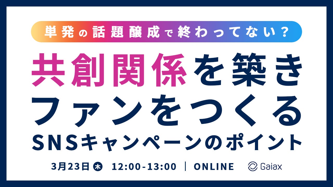 SNSをハブにしたマーケティング支援事業を展開する株式会社ガイアックスが『共創関係を築きファンをつくるSNSキャンペーンのポイント』ウェビナーを3月23日(木)開催!