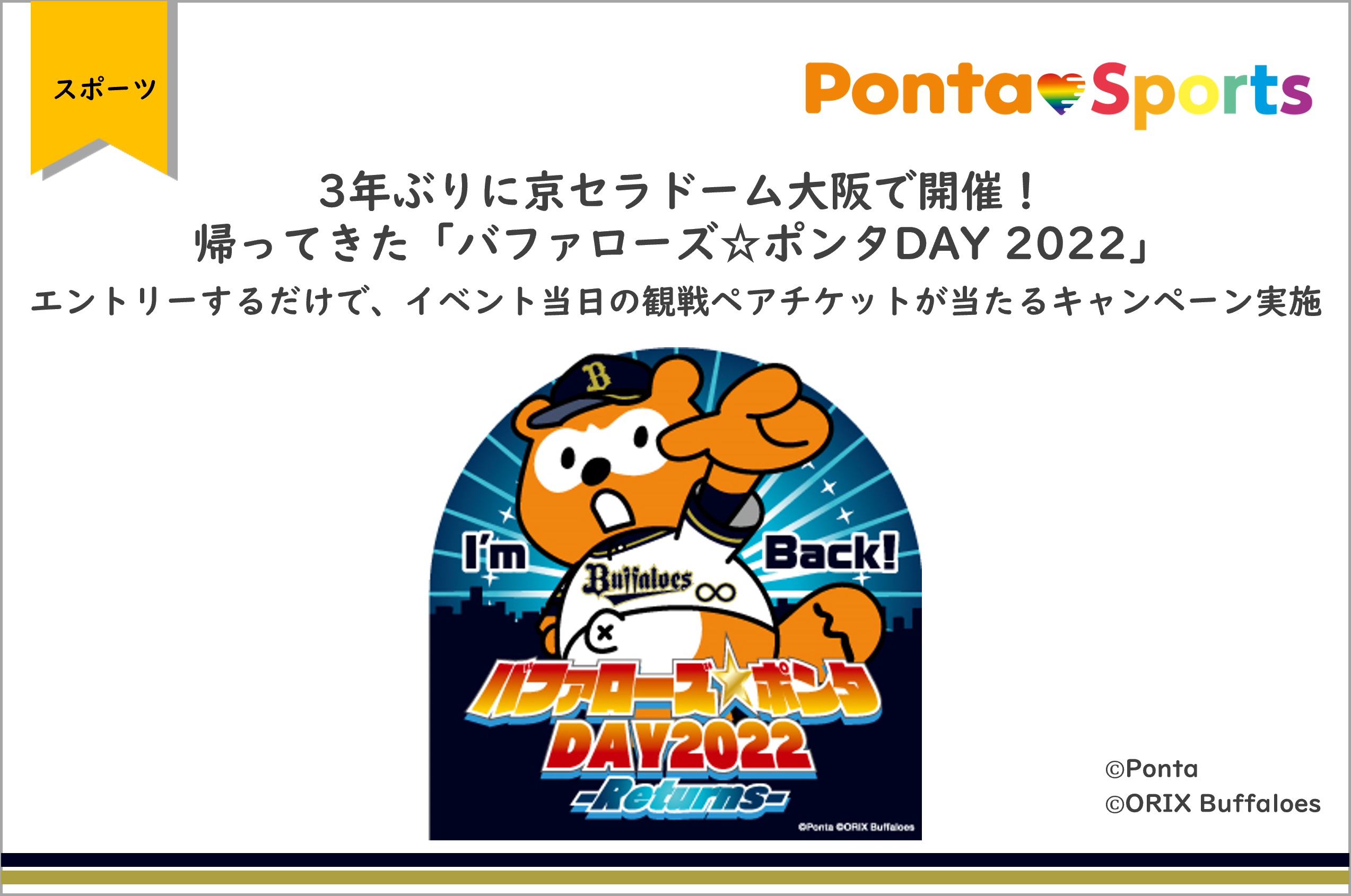 - 【バファローズ☆ポンタDAY 2022 開催決定記念! 観戦ペアチケットプレゼントキャンペーン 概要】