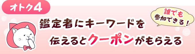 対象期限内に、150文字以上の口コミを投稿したお客様全員にボーナスポイントをプレゼントいたします。あなたがおすすめしたい鑑定者の人柄や魅力、みんなに伝えたいところなどを口コミにご投稿してみませんか。