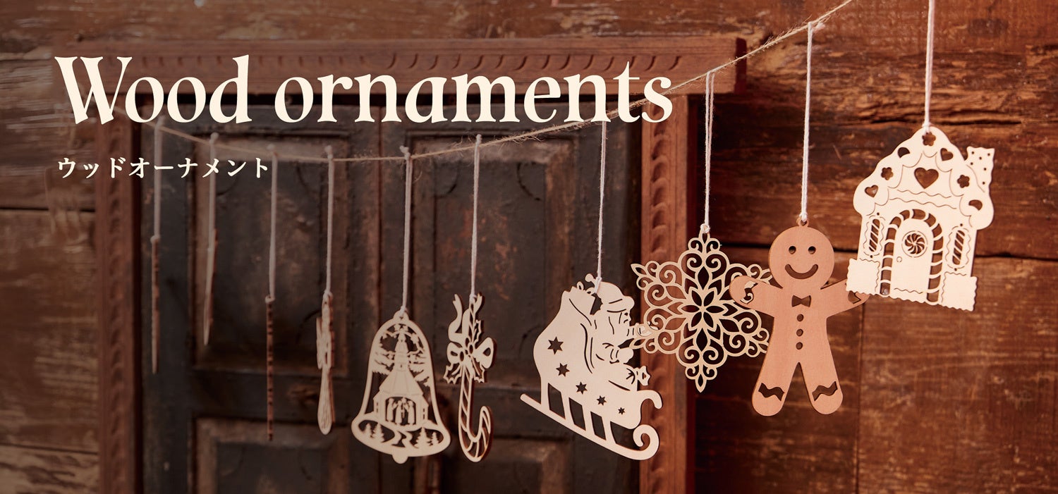 羊毛フェルト、ドイツ製レース、ウッドオーナメントなど、手仕事のあたたかみが感じられる飾りが勢ぞろい。サンタクロースやスノーマン、動物モチーフのほか、北欧で親しまれる妖精「トントゥ」のぬいぐるみも可愛らしくツリーを彩ります。
