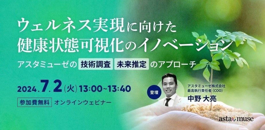 ウェルネス分野の最新動向がわかる無料ウェビナー「ウェルネス実現に向けた健康状態可視化のイノベーション ~アスタミューゼの技術調査・未来推定のアプローチ~」を新規開催