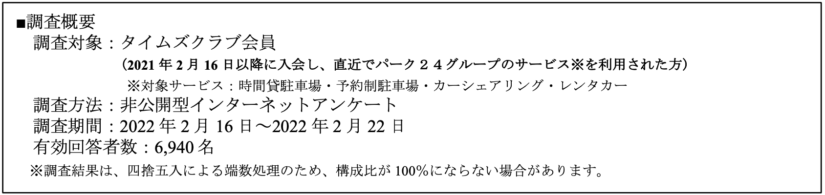 なお、本アンケートは、駐車場やカーシェアリング、レンタカー等のクルマに関わるサービスを利用した方々を対象としたものです。
