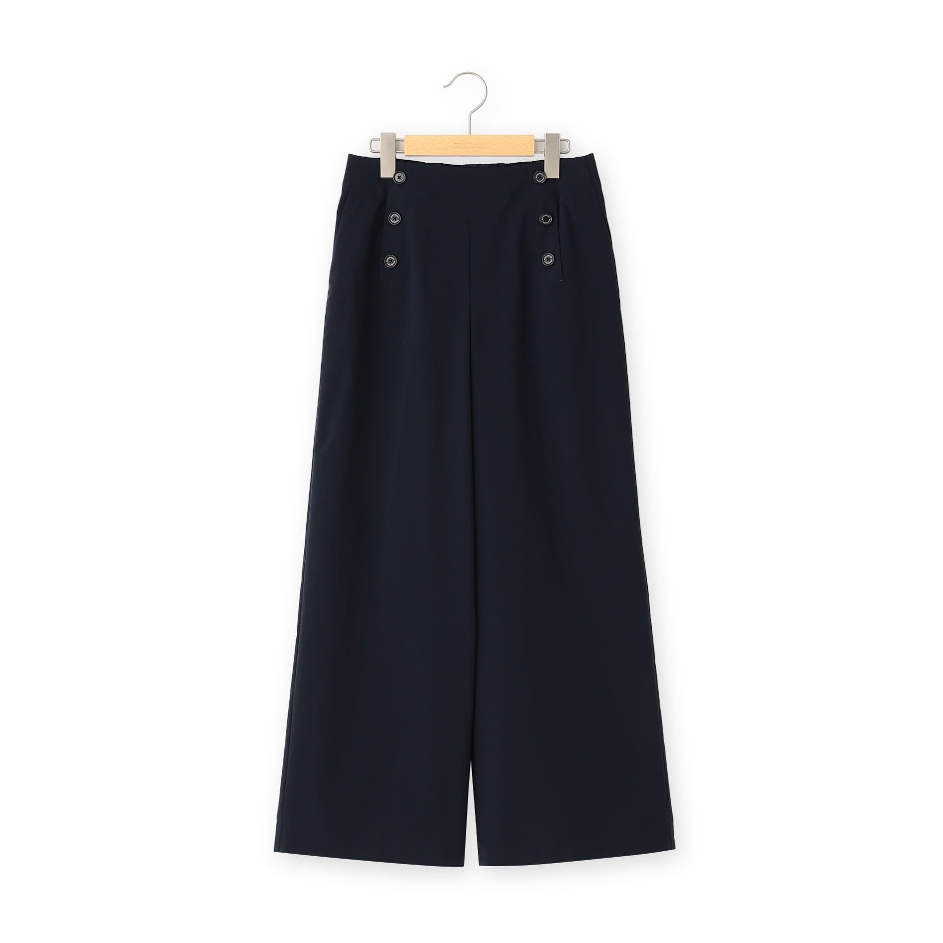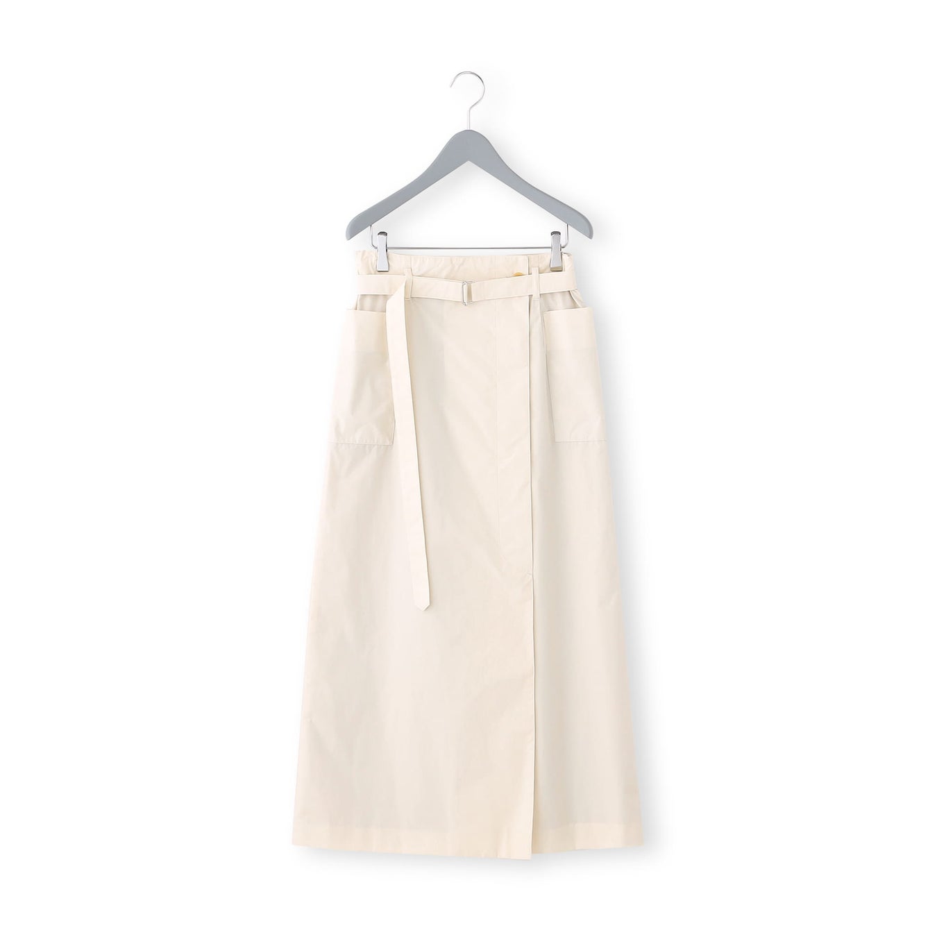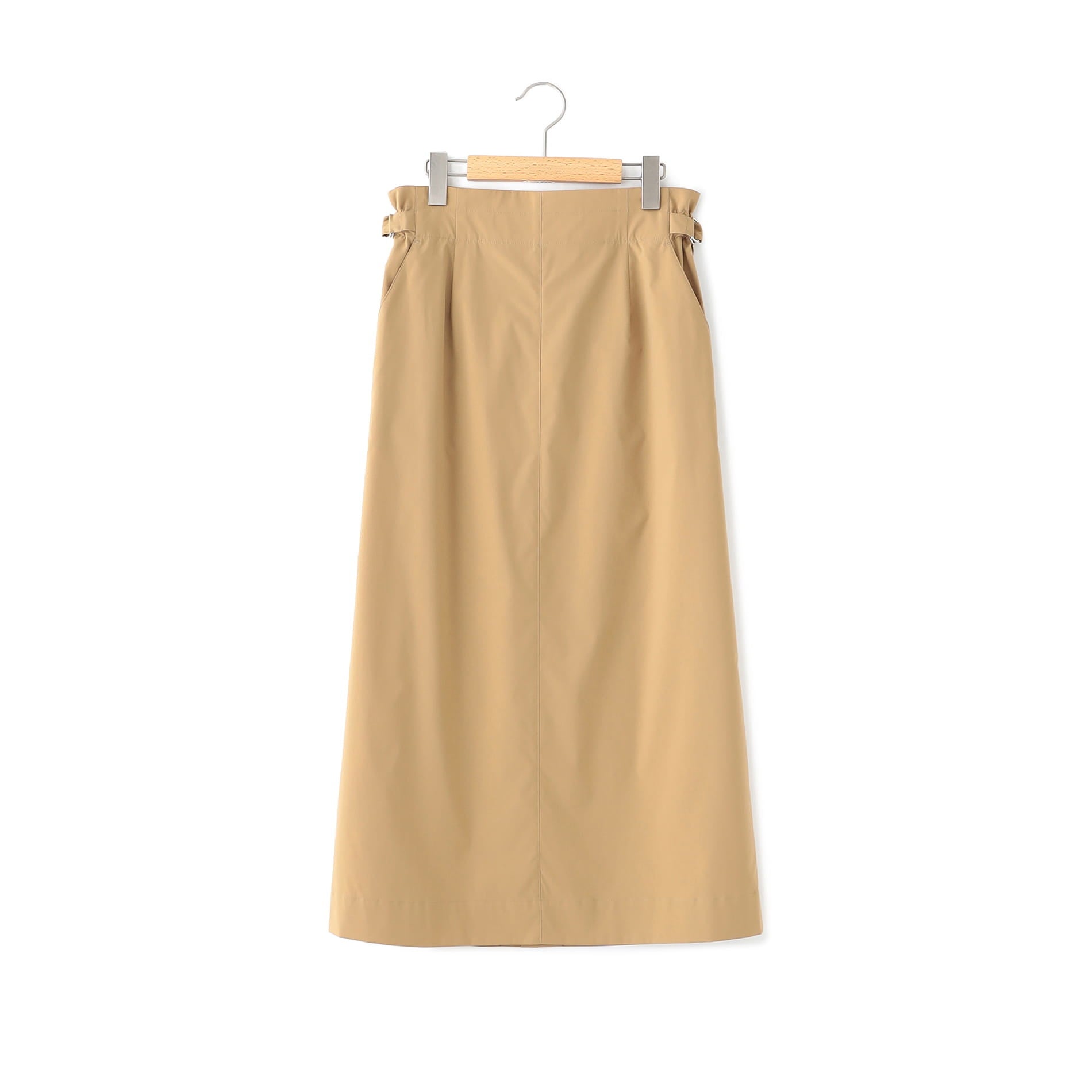 ポリエステル素材で家庭洗濯が可能、適度なハリ感とストレッチ性を兼ね備えた素材にはっ水加工を施しました。ゆったりシルエットのマリンパンツとすっきりと着られるハイウエストデザインのスカートは、雨の日だけでなくデイリーに着用できます。