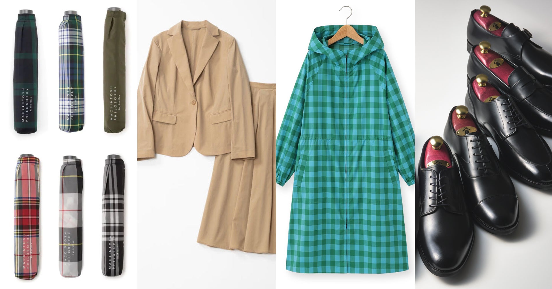 激しい雨でも困らない、レイン対応のビジネスアイテムも登場 定番のレインコートに加え、幅広い商品ラインアップ
