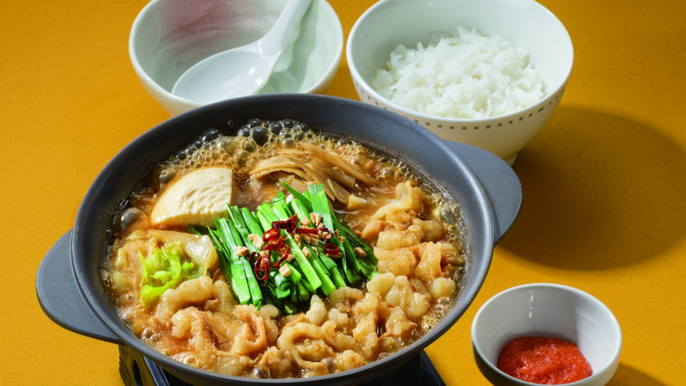 たっぷりな牛もつと長ネギ/ニラを、米/麦の2種類