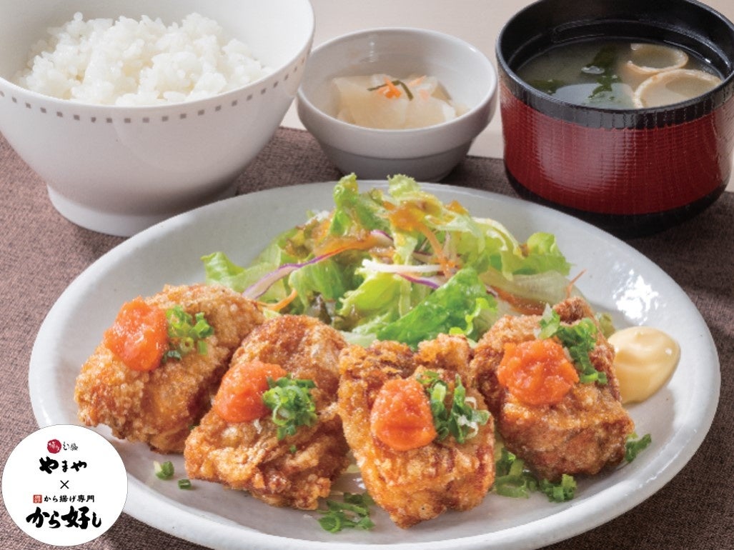 国産ゆずをアクセントにしたやまやの「辛子明太子」を、から好しのジューシーなから揚げに合わせた、鉄板の定食。