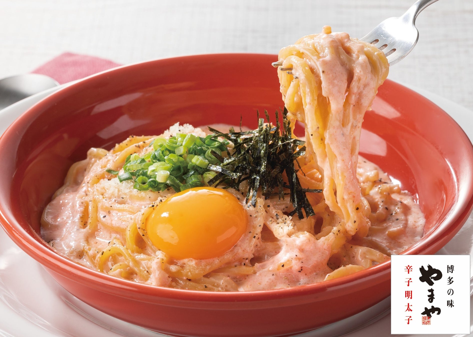 明太子クリームソースに、やまやの「辛子明太子」を使用。自家製生パスタに、マイルドな辛みの明太子クリームソースが絶品!
