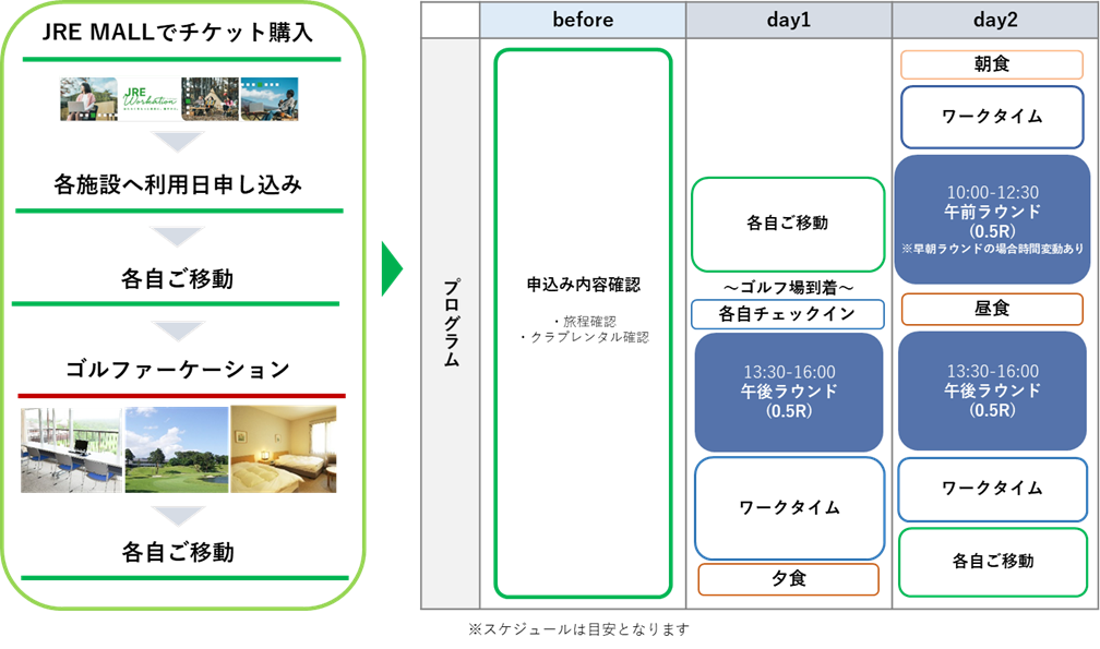(例)1泊2日「ゴルファーケーション」の過ごし方